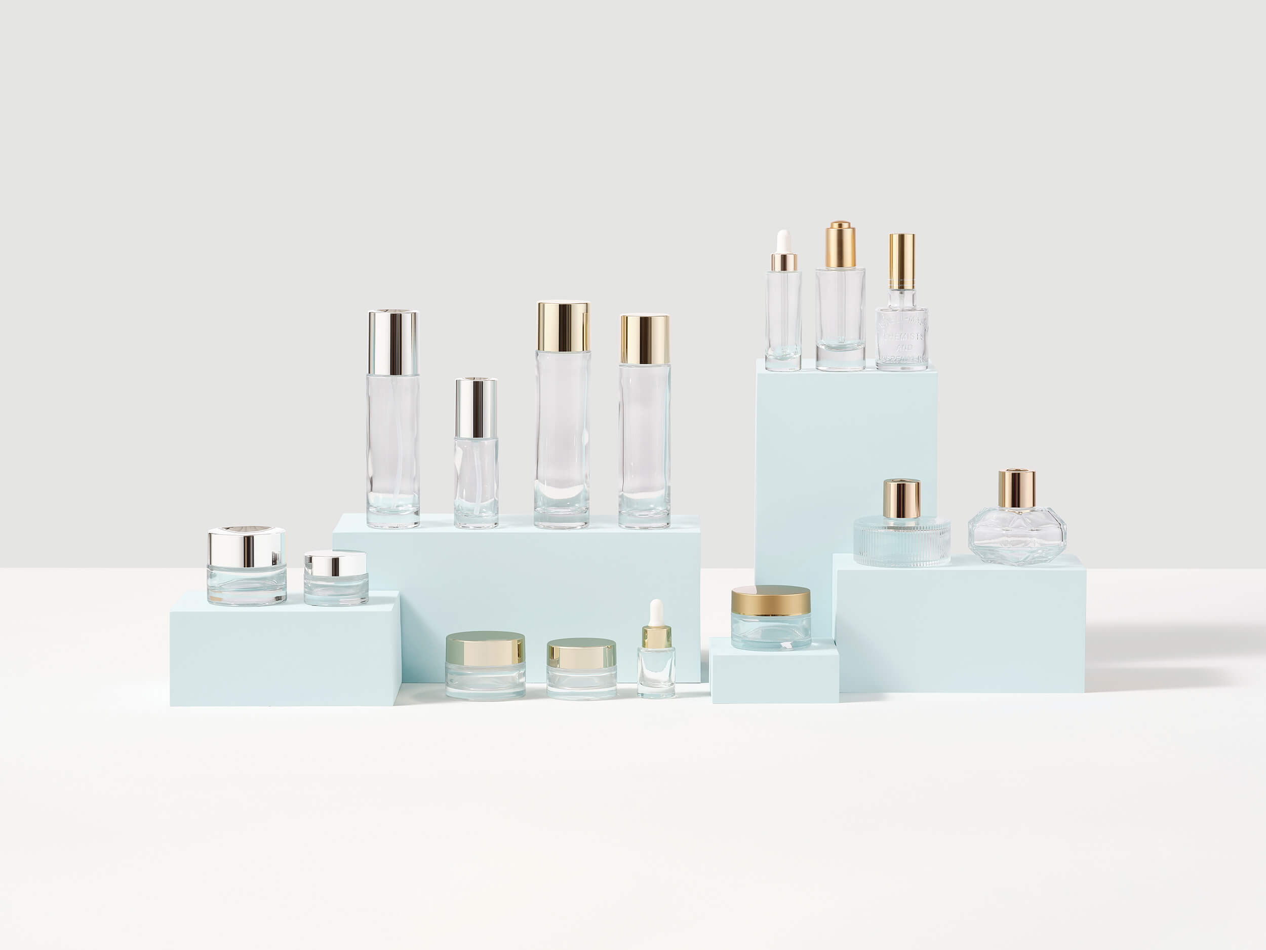 Evergreen offers a broad portfolio of stock and custom cosmetic glass containers. Each design is available in several sizes and formats, allowing brands to convey a cohesive presentation across multiple products.